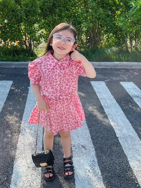 Introducing our Safari Chic: Leopard Crop Top with A-Line Skirt, a charming outfit from Tiny Fashionistaz, where we believe in blending style with joy. The short-sleeved crop top and the elastic-waist A-line mini skirt are designed for both style and comfort, ensuring your child's confidence and delight. Made from a premium blend of cotton and polyester, this outfit guarantees breathability and ease of movement. Perfect for any occasion, be it a birthday party or a family get-together, this outfit empowers your little one to express their unique style.