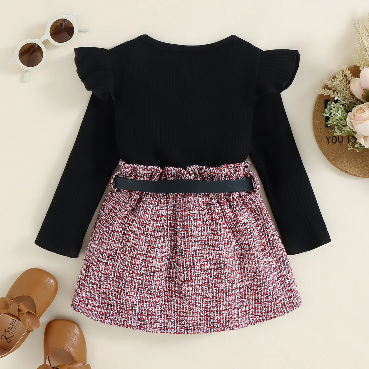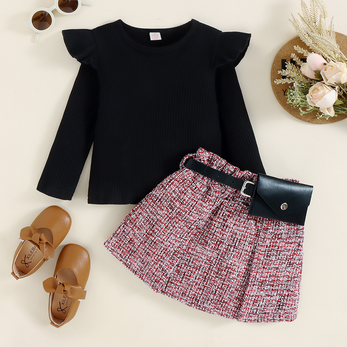 Super snuggly and stylish, our ruffled ribbed top and A-line skirt with waist bag will have your little one looking adorable this Winter. And what's more, it even comes with a cute wee waist bag - how cool is that?!